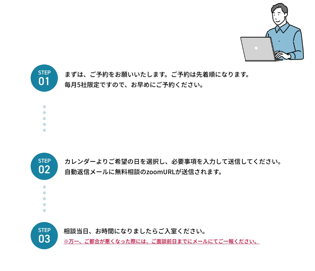 ご相談内容を整理しておいてください。